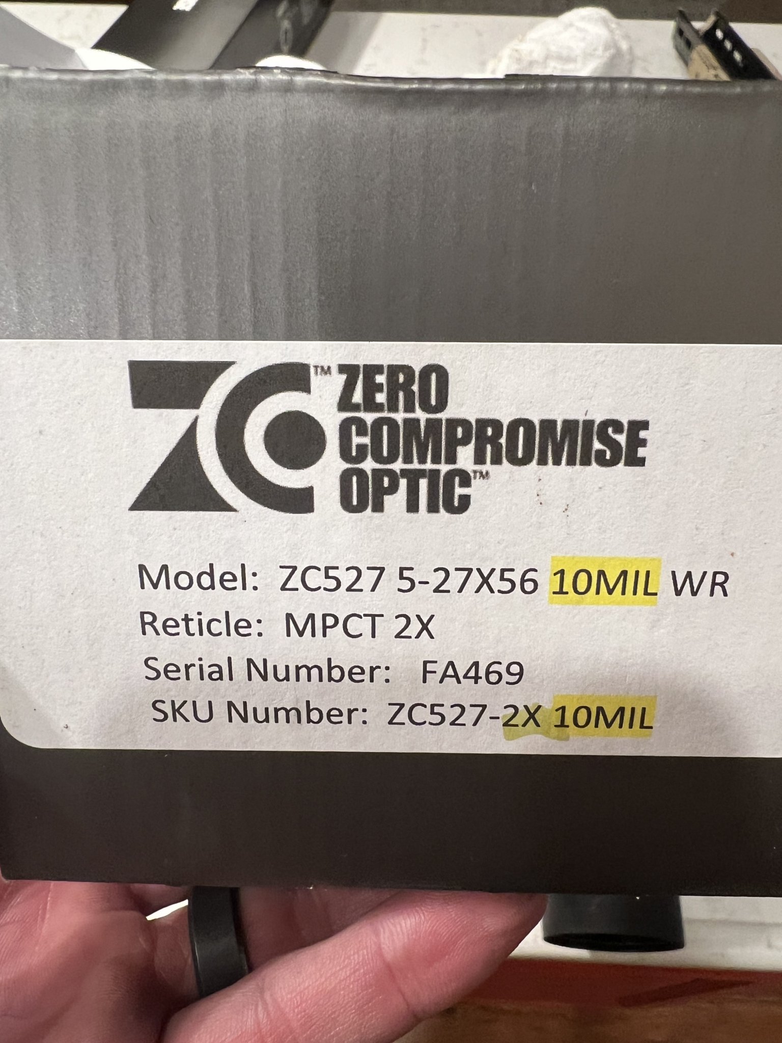 SOLD Zero Compromise optic ZC527 MPCT 2X 10MIL