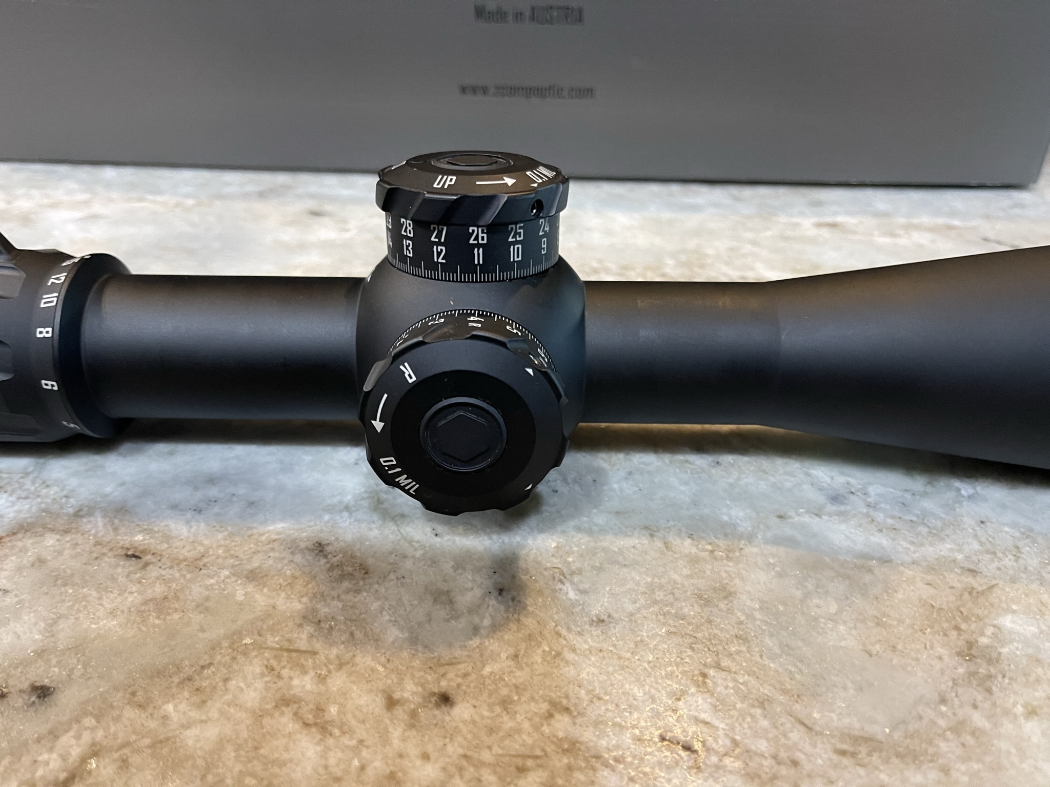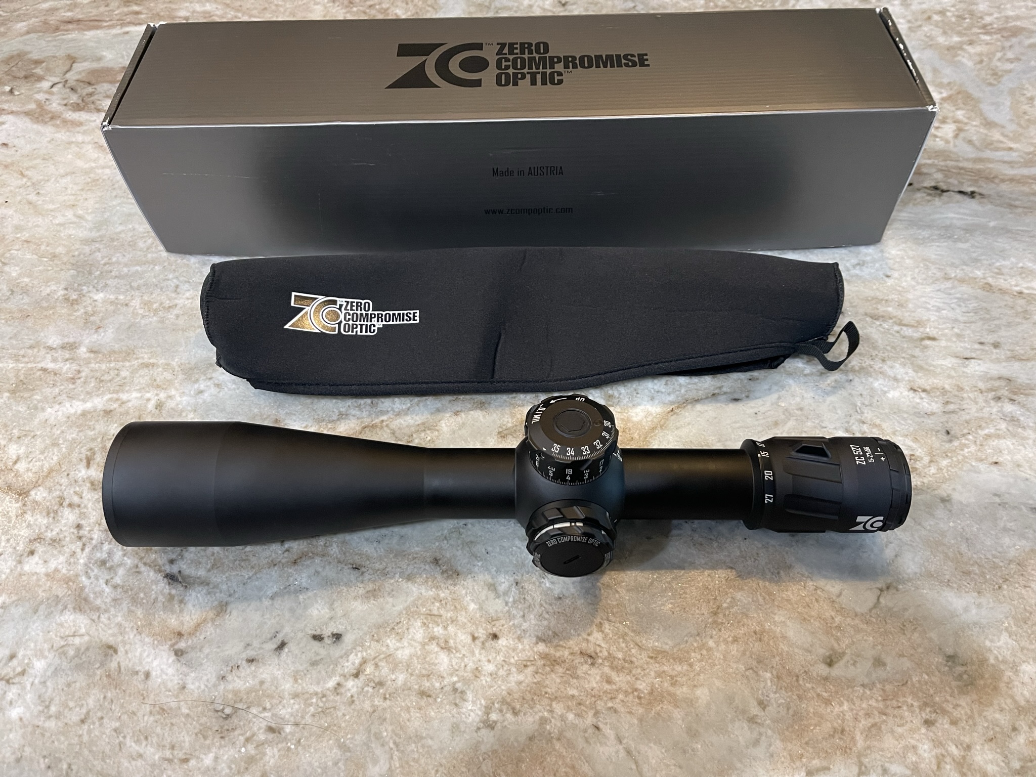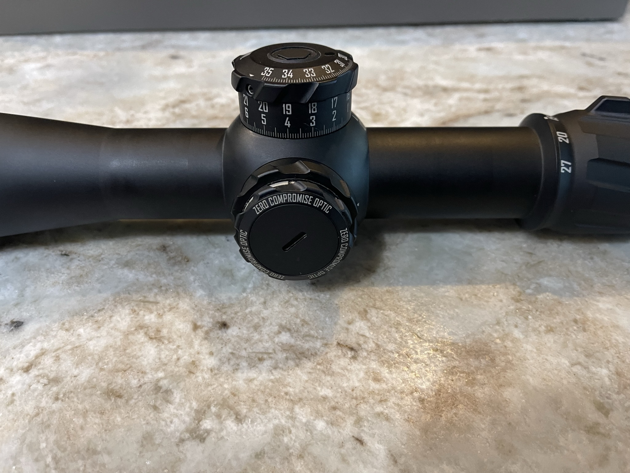 Zero Compromise 5-27x56 rifle scope for sale with MCPT-2 Reticle with the non-locking elevation turret.