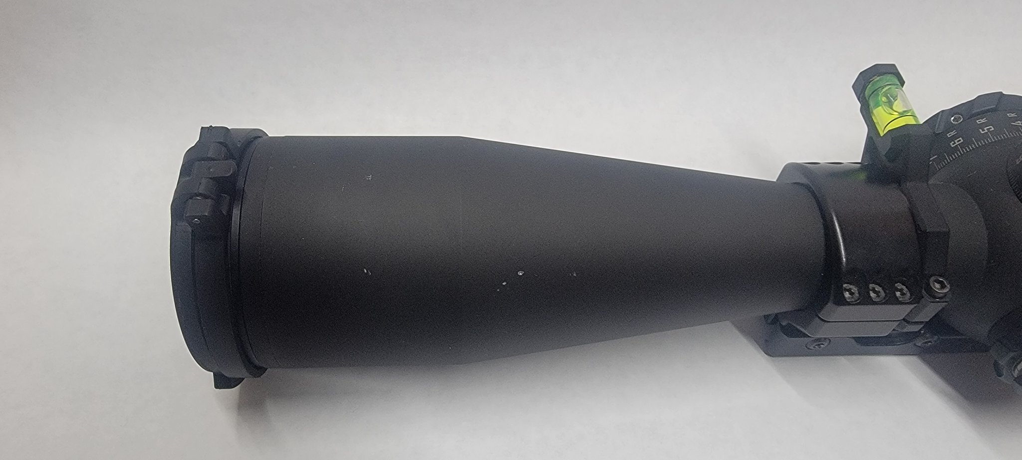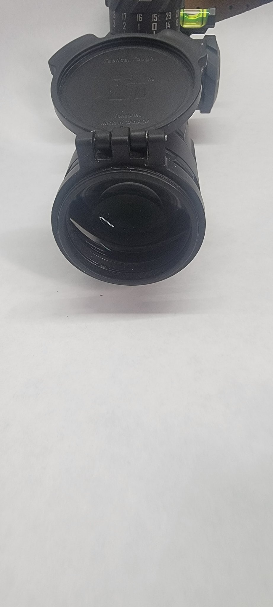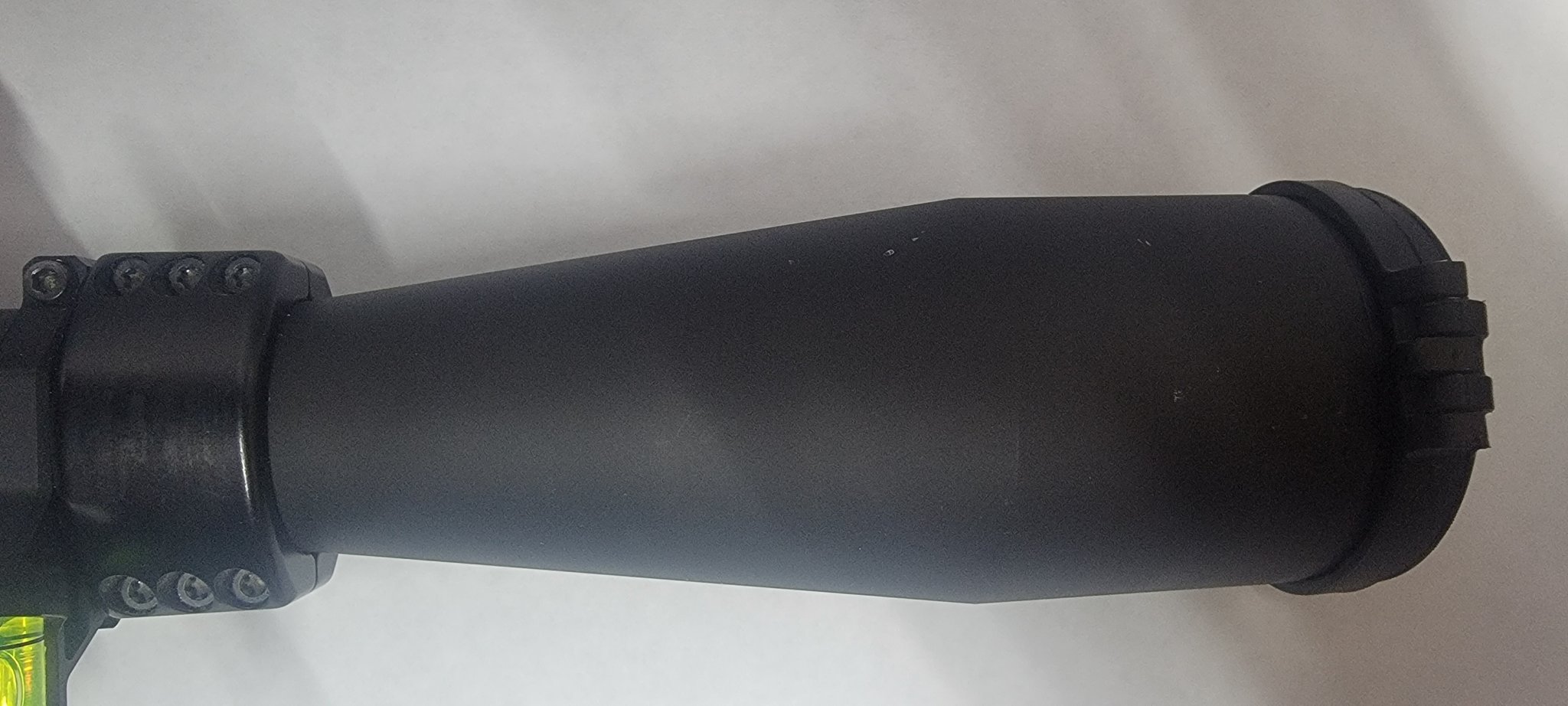 Glass is perfect. Few marks in the finish on the scope bell from use. Tenebraex caps and level included. Includes the RRS Uni-Block mount. It's a 36mm 1.26". Scope will also come with a MKM throw lever that isnt pictured.