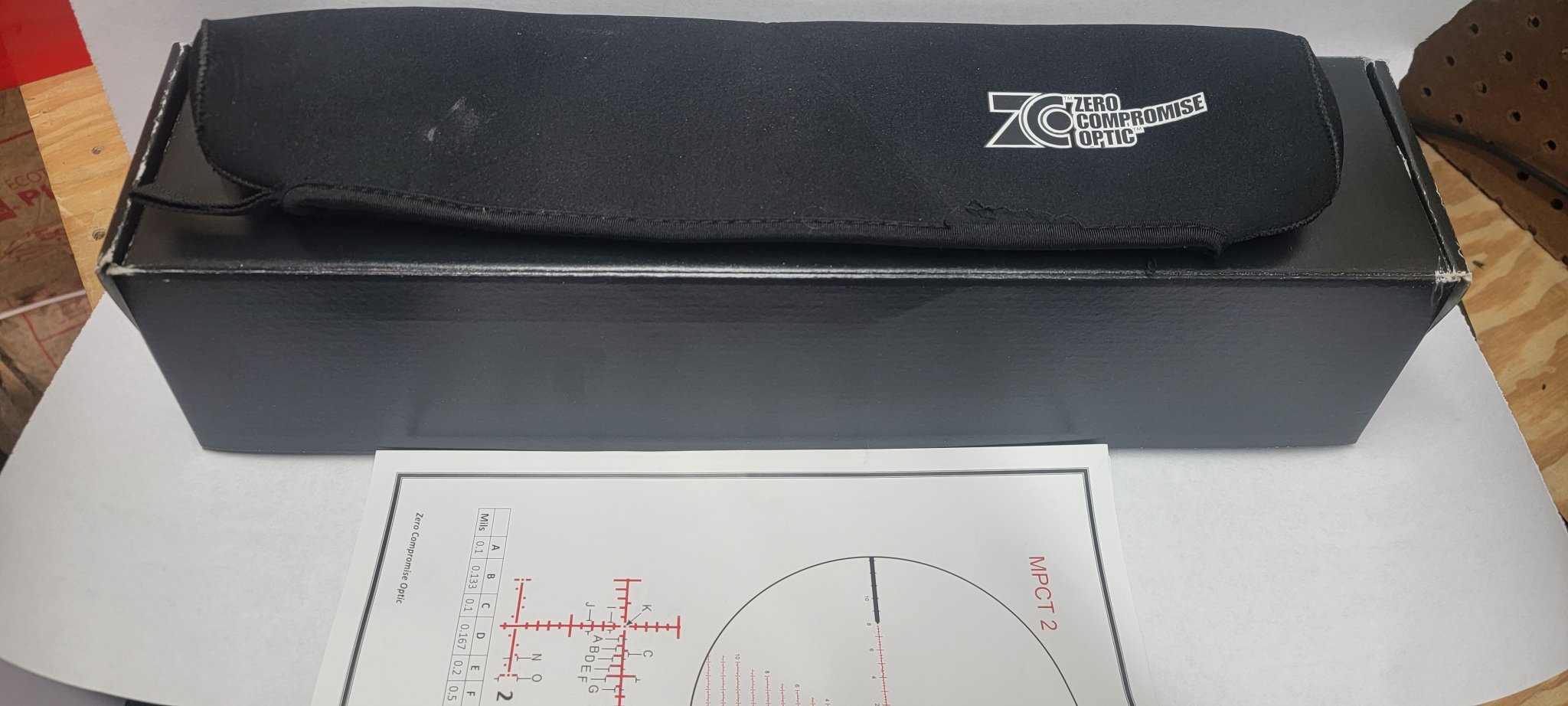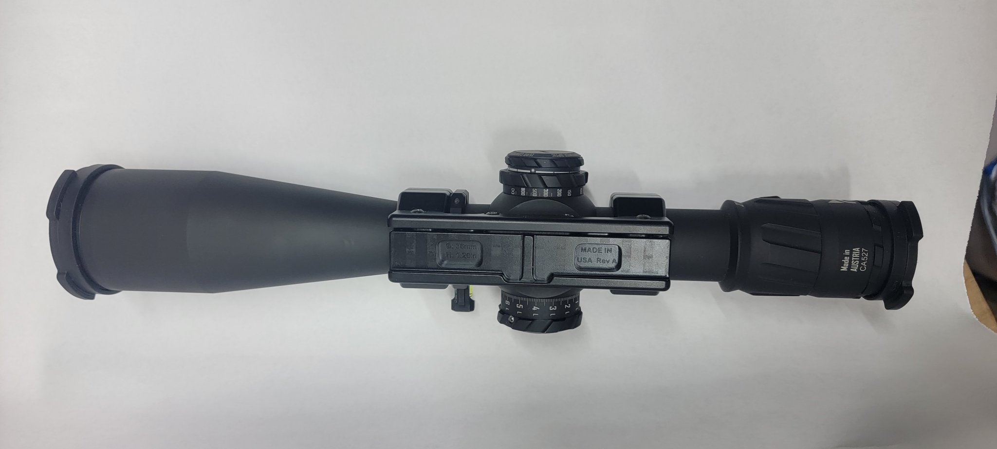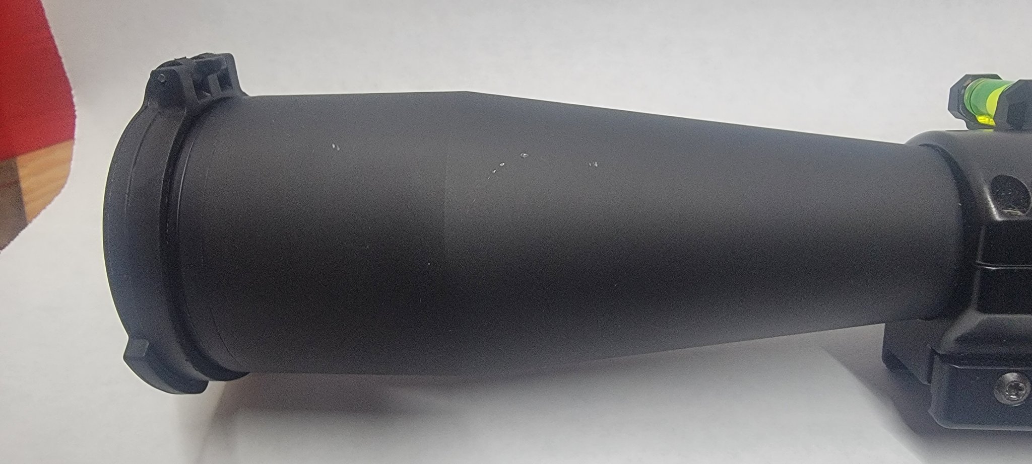 Glass is perfect. Few marks in the finish on the scope bell from use. Tenebraex caps and level included. Includes the RRS Uni-Block mount. It's a 36mm 1.26". Scope will also come with a MKM throw lever that isnt pictured.